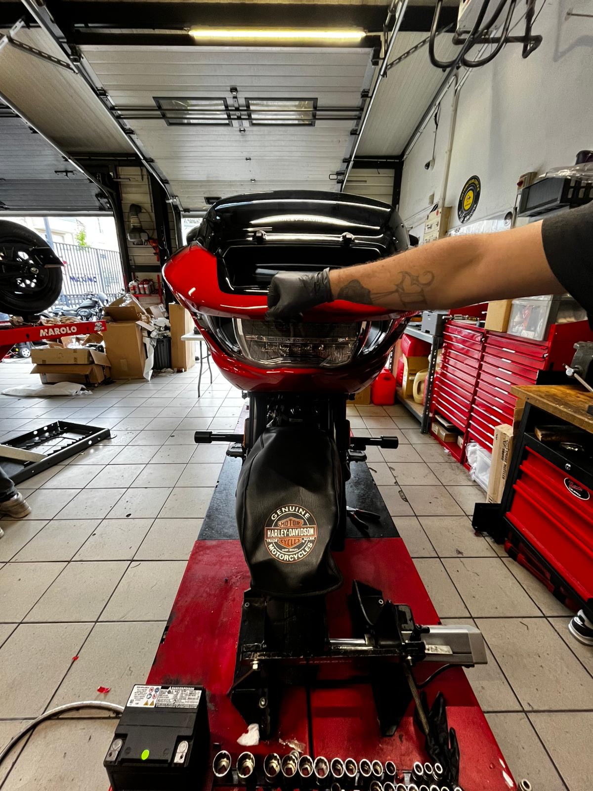 Nous sommes fiers de présenter notre CVO Roadglide RR entièrement préparé par notre équipe, avec une peinture unique en Europe ! Mais le plus important c’est que nous avons fait un client heureux qui a eu un coup de cœur pour cette magnifique réalisation et qui en fait notre fierté dès qu’il sillonne les routes avec !